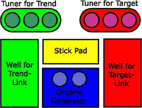 Below see the diagrams of a traditional radionics device with